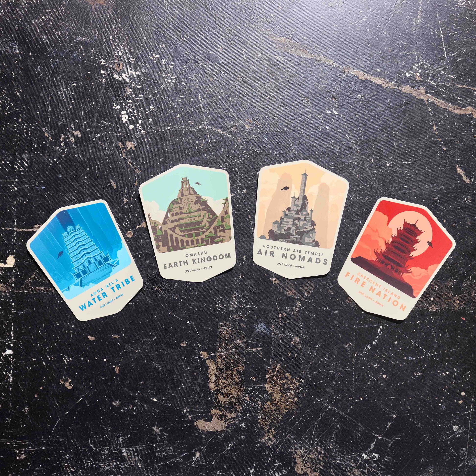 This pack features four premium 4x4-inch stickers, each representing one of the iconic bending nations—Water, Earth, Fire, and Air—with stunning custom artwork that embodies the spirit of the beloved series. Utilizing artwork in collaboration with Bear Walker and Nickelodeon.