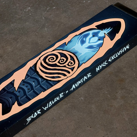This NYCC 2025 exclusive Bear Walker x Avatar: The Last Airbender 20th Anniversary cruiser deck is handcrafted in the USA and utilizes artwork in collaboration with Bear Walker and Nickelodeon. This NYCC event exclusive features a print of the Ocean Spirit on the back. Each board has a numbered, holographic Certificate of Authenticity card and premium packaging. Edition size of 100.