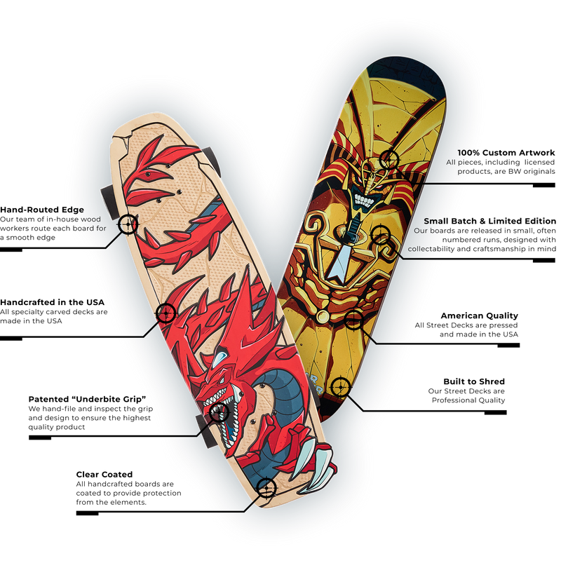 Each of our custom collaborations comes with a one-of-a-kind, numbered, Certificate of Authenticity. These boards are not only fully functional skate decks, they’re truly collectable pieces of art.