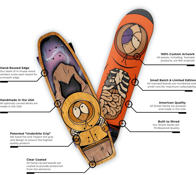 Carved board includes custom Bear Walker x South Park wheels