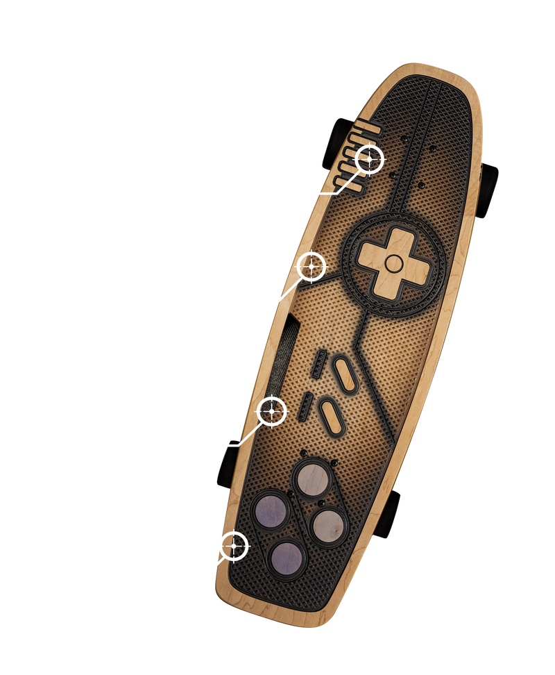 The official KOI cruiser. This board is handcrafted using cutting-edge technology and old-school woodworking techniques. The design features custom artwork carved into our patented Underbite grip. This is a natural product, so wood grain may vary.